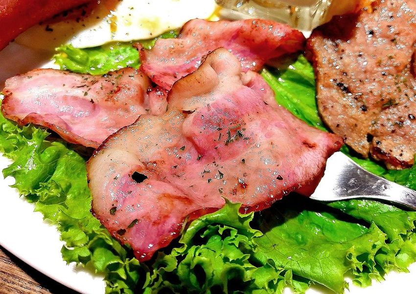 豬里肌與香煎培根油脂很少,口感吃起來不乾不柴,怎麼吃都不膩
