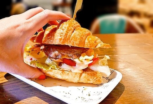 口感酥脆的豬排可頌真的很美味.現在想到還會吞口水~