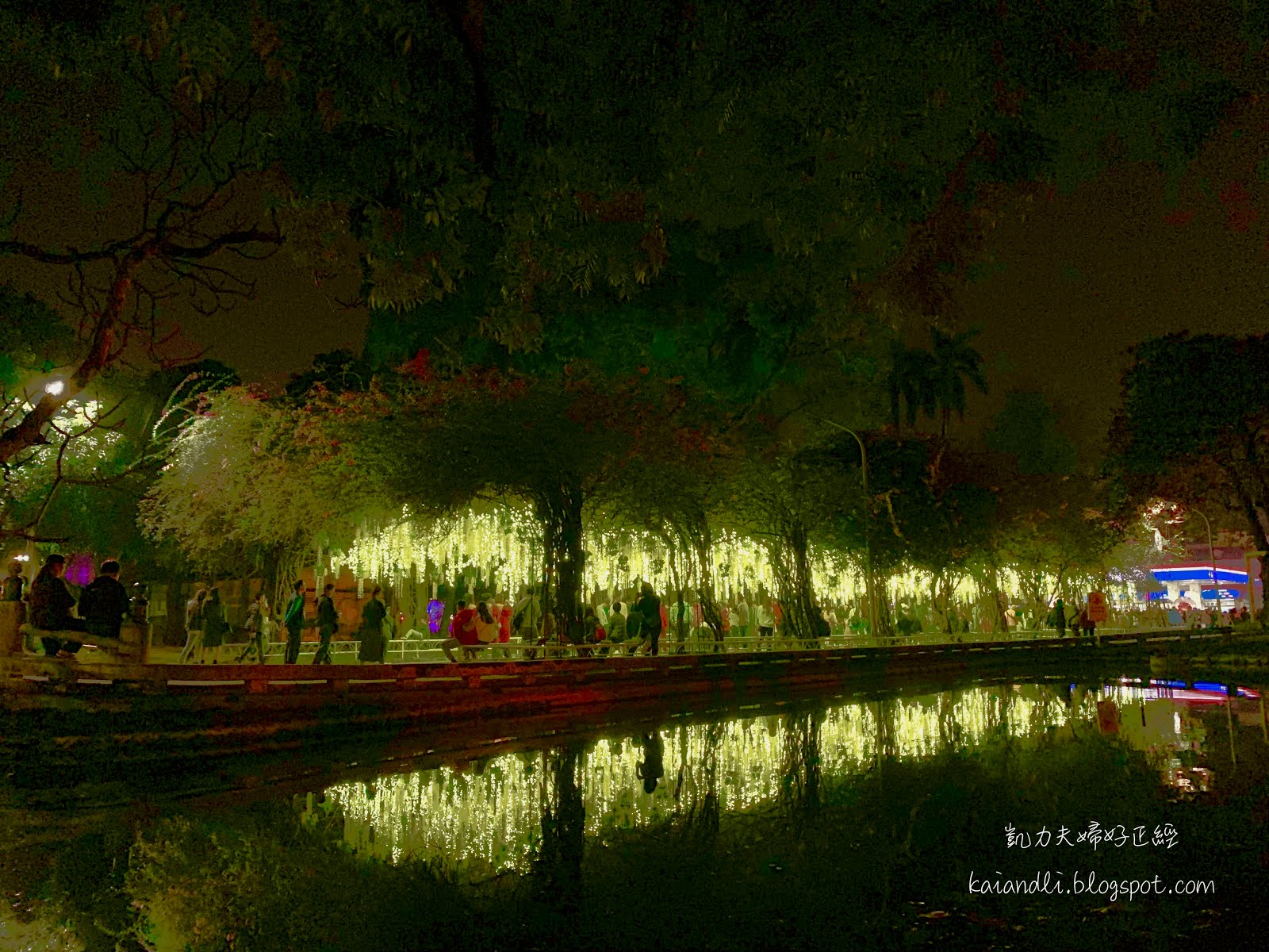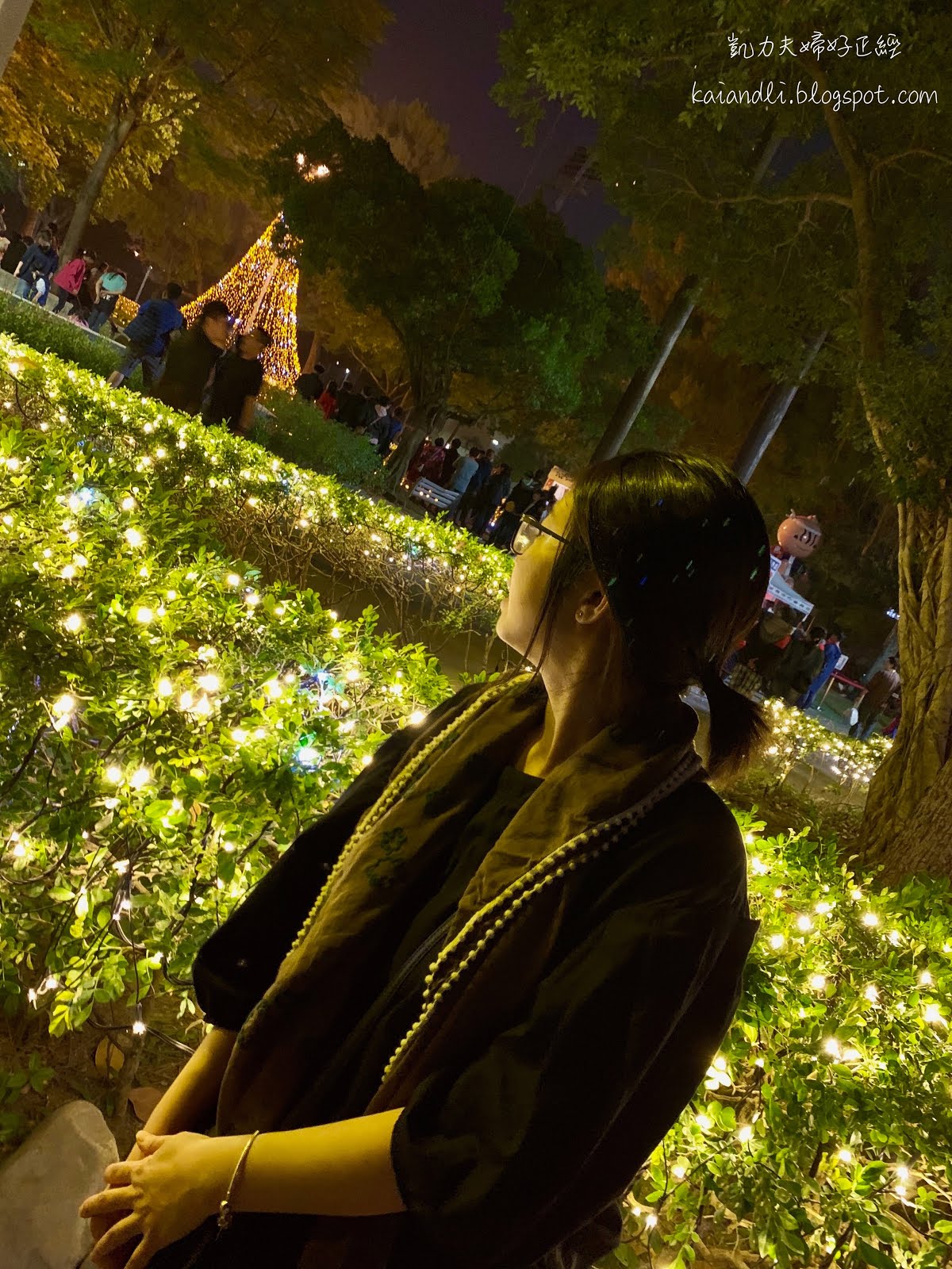 同樣另一個角度拍攝,聖誕燈飾搭配公園的水池,真是如詩如畫