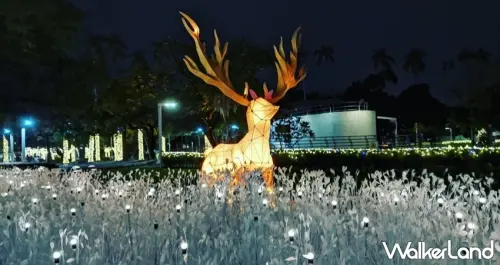 湖泊旁還有非常夢幻的景緻,一片雪白的燈飾打造出好似在雪白草原奔馳的雄鹿,讚嘆設計者的用心