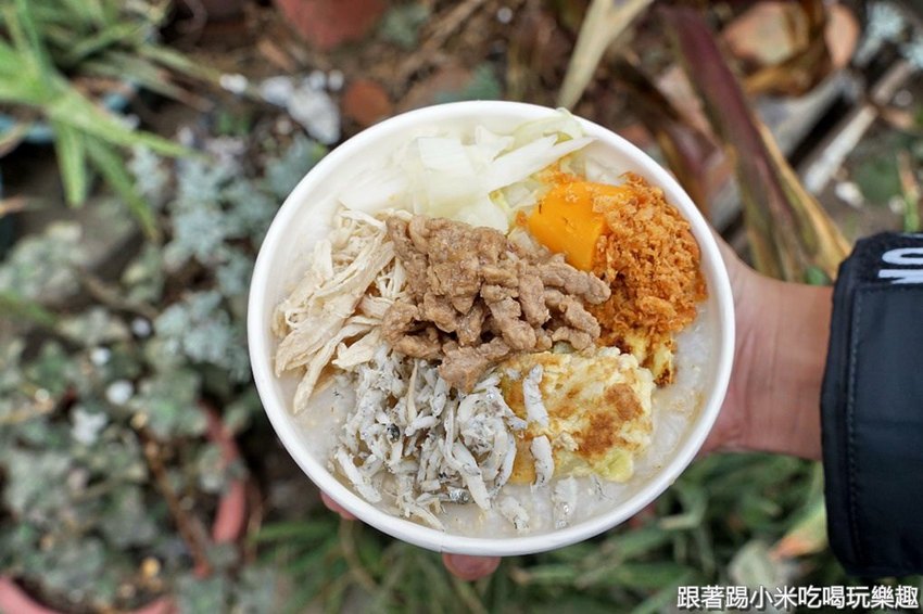 想一次嚐到所有口味可以點他們的綜合粥(大碗)60元,基本是有煎蛋、吻仔魚、雞絲、地瓜.肉絲.蔬菜及香鬆,很有營養的早餐