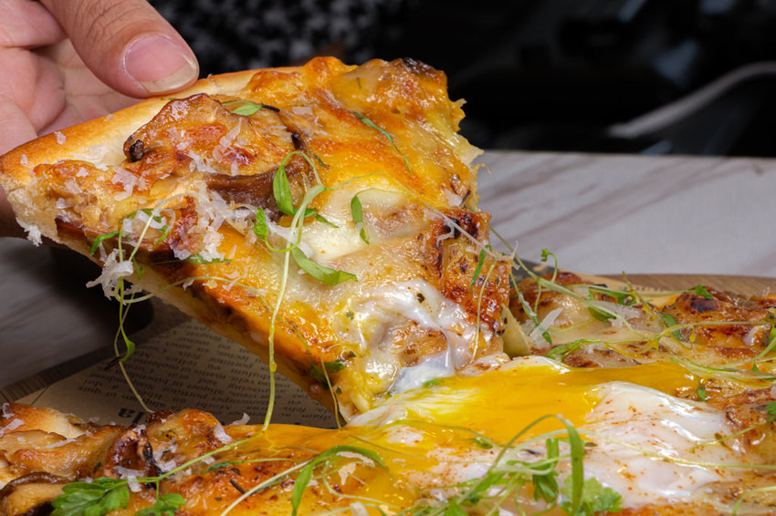 不過那黑松露被吃掉也不用太擔心,整份pizza裡依舊有著濃烈的香氣,吃起來真的很過癮,而pizza本身餅皮也不會過厚,適合3個人分食,1人品嚐2塊恰恰好。