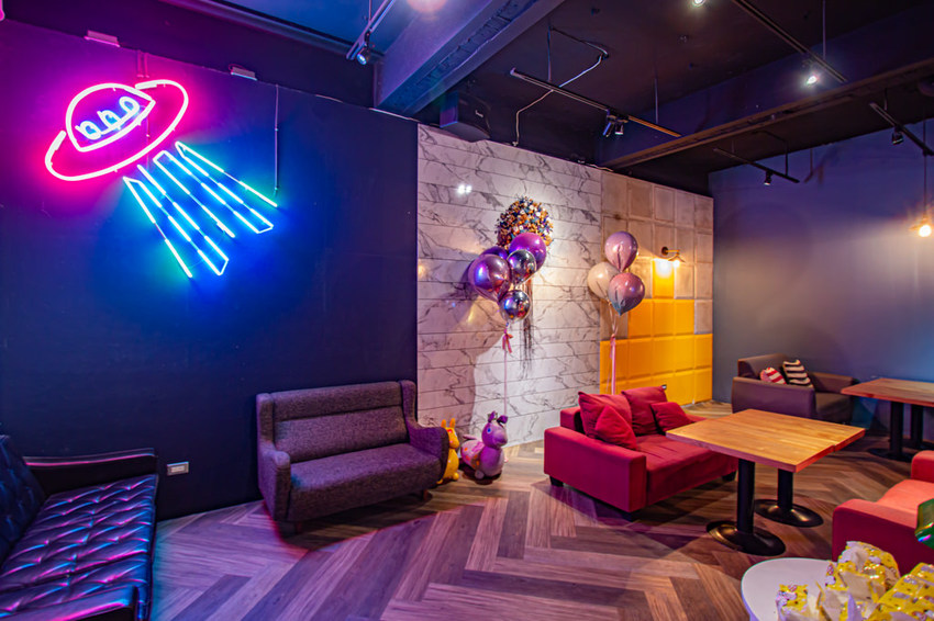 另一邊的牆面還有酷炫的飛碟與夢幻派對的造景,看上去也是好好拍。
