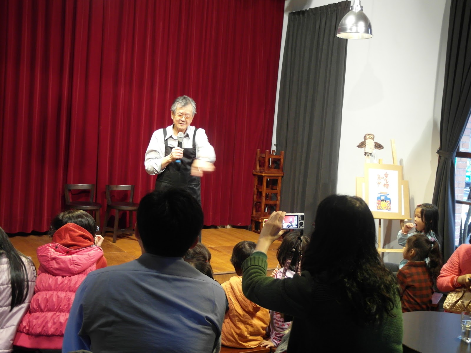 舞台上是黃爺爺(黃春明老師)說故事,小孩子專心的凝聽,故事傳承的是簡單的哲理,小孩的童真為黃爺爺打了兩千分的高分,孩子的兩千分,卻是父母親的感謝萬分。「愛吃糖的皇帝」,一場戲逗得全場樂不可支,演員細膩的神情,老少咸宜的劇情,引申出簡單的教育哲學,「勿吃太多糖,吃完糖要記得刷牙」,不透過說教的模式,利用教育性演出的方式,使得小孩子們獲得啟發。