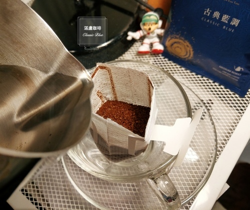 湛盧咖啡 經典獨家濾掛咖啡 古典藍調︱用少量熱水預浸十秒後,分次緩慢注入熱水至180ml,可依個人濃度喜好浸泡數秒