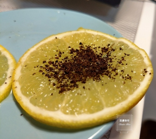 直接一口將檸檬扎片放入口中,快速咀嚼後,口中先感受到的是檸檬的酸、咖啡香、及紅冰糖的甜,對於口中的味蕾來講是全新的衝擊。