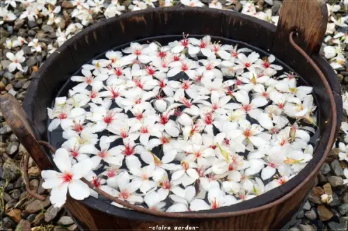 挑水古道賞桐的特色,就是一旁的小水缸,