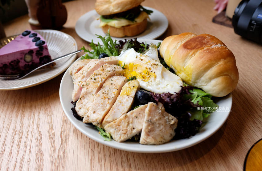 雞肉份量實在,調味可以,沙拉醬汁比例剛好,不會讓麵包沾到太多,盤子也沒有留下太多,荷包蛋比較隨性一點XD