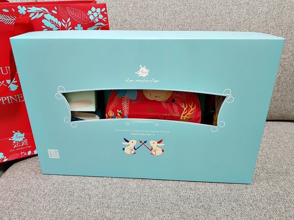 裡面的禮盒用淺淺的粉藍色, 應該很對女生, 以及 年輕人的口味吧!! 盒上印著兩隻可愛的小兔兔, 有少女心和童心的噴發感喔~~