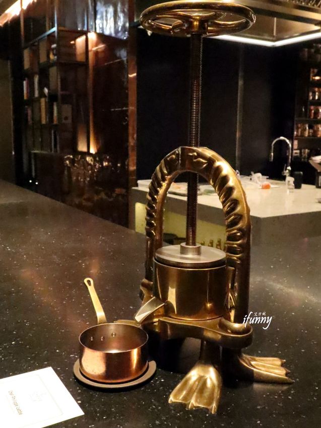 上圖是台北主理人找來全台唯一的榨鴨機,其底部支架還特地仿鴨掌而打造,真是太可愛了!