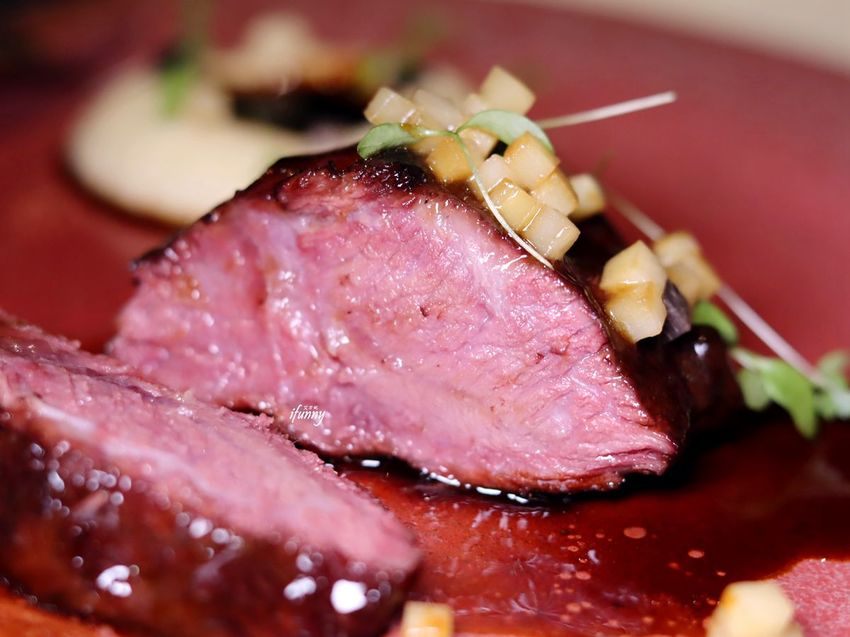 在大部份的時候,甜菜根幾乎是切片或成泥,倒是第一次吃整顆的甜菜根,經由鹹烤後,甜菜根吃不出土腥味,輕脆可口的口感。底下的醬汁因為是魚卵組成,會有些許的腥味。