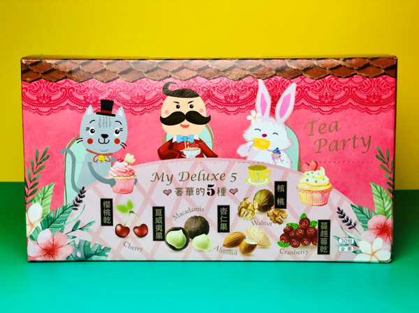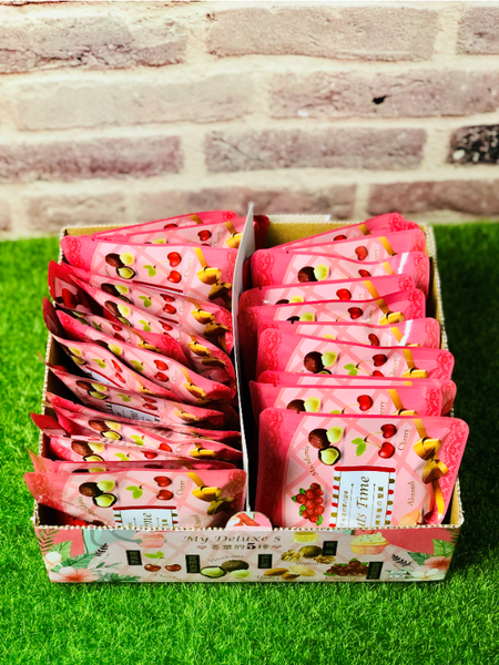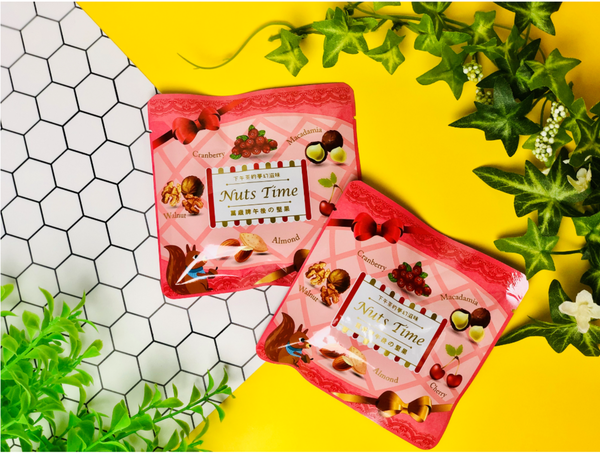 每小包裡面都含有夏威夷果、杏仁果、核桃、櫻桃乾以及蔓越莓乾