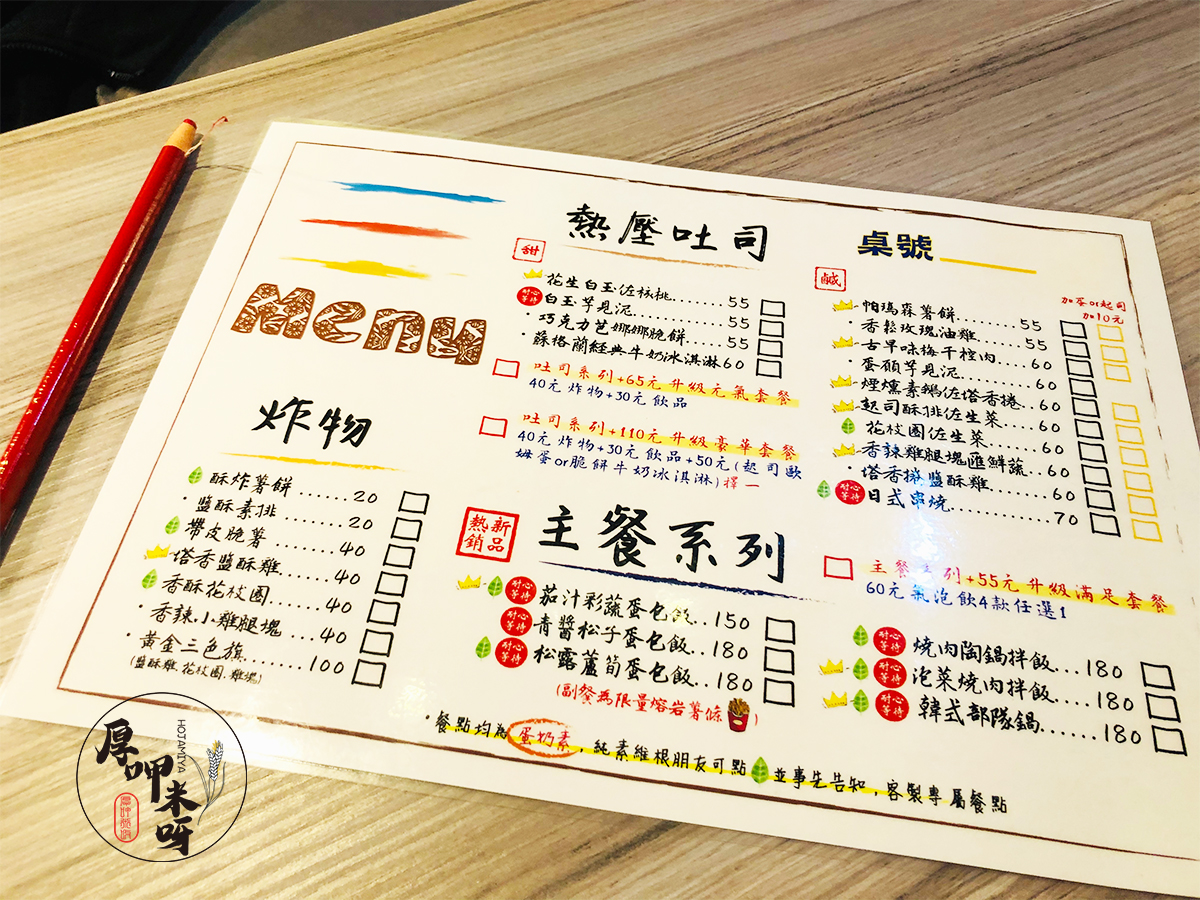 菱紋蔬香咖啡館(Toast shop)主打蔬食料理,除了飲料、甜品外的鹹食,都是蔬食呈現,賣的品項不少,其中包含10種鹹食口味及4種甜味熱壓吐司,光是熱壓吐司就創作出超多樣式,甚至還有熱門單點商品日式串燒熱壓吐司,而主餐系列主打蛋包飯、拌飯及韓式部隊鍋,像我喜歡多件式的套餐組合,還可以加購成為元氣套餐或豪華套餐,蠻推薦豪華套餐的選擇,可以擁有飲品、單點炸物、還有一個我覺得蠻好吃的脆餅牛奶冰淇淋。  |