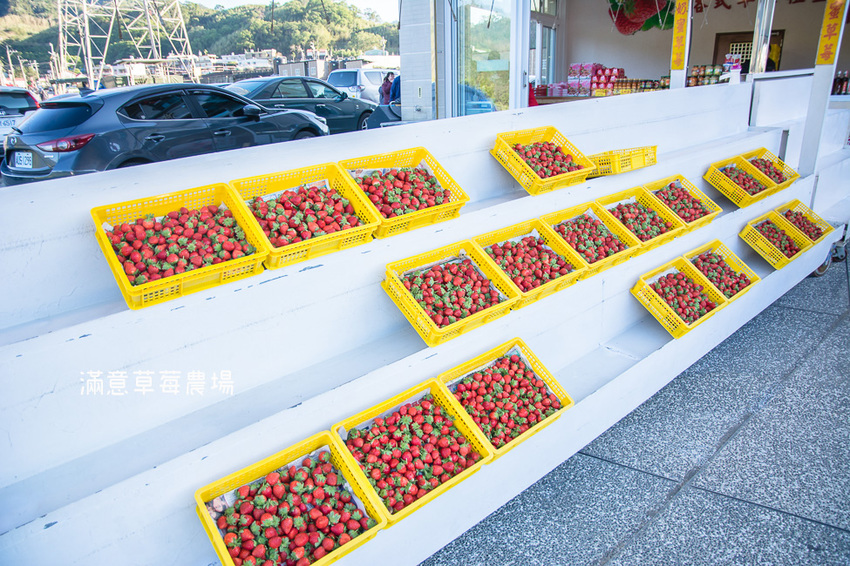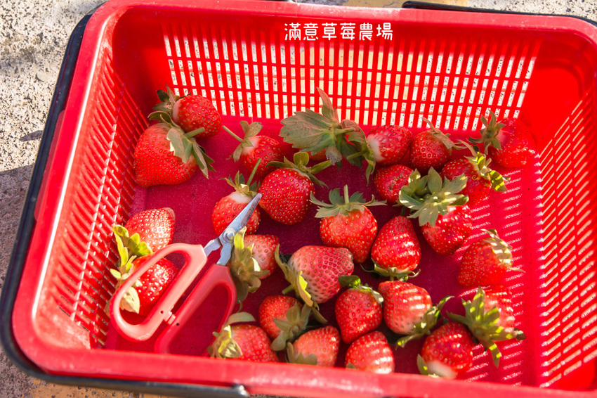 喔對!滿意草莓園這邊有位置可以停車,不太用擔心停車位置,停好車就去跟老闆拿籃子跟剪刀就可以選好區塊採草莓囉!