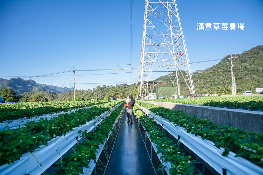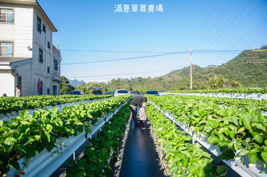 滿意牛奶草莓農場我最喜歡的就是他們的景色,背面是綿延不斷的山,搭配上一整片的草莓園,真的就是名副其實的大自然風景啊!