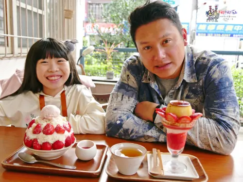 大溪車站對面這間甜甜看起來也沒有開很久,我記得之前是另外一家店,不知何時改成這麼粉紅少女的一家店,我在IG上看到他們推出的草莓季甜點,直接被吸引住了,趕緊相機拿好找阿寶一起來吃。
