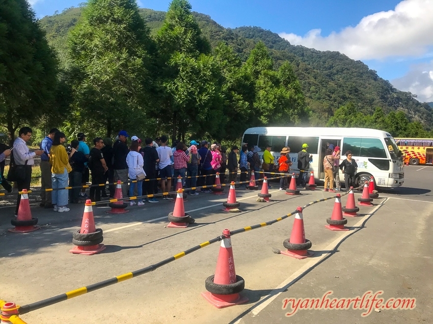 看看這長長的排隊人龍,好在今天接駁車的班次還算多,大約等個二十分鐘左右就能搭到車~