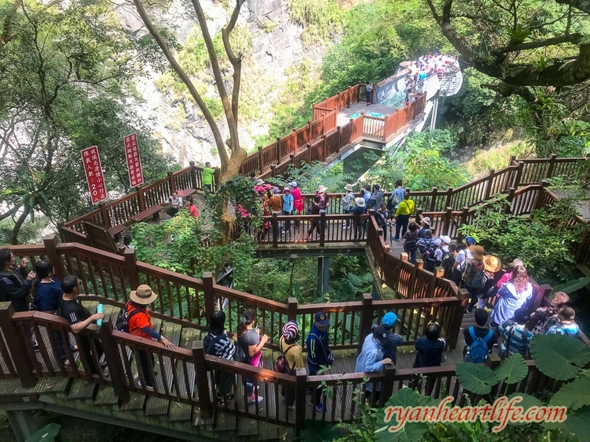 由於透明步道的橋身一次大約只能容納二十人左右,所以在入口處會有幾位身著綠衣的工作人員在協助管制進出人數和停留時間~