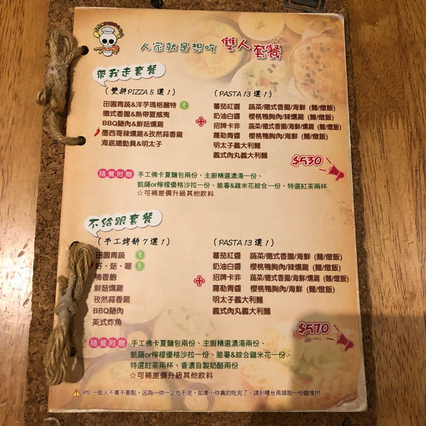套餐內容從前菜、濃湯、麵包還有兩份主餐(手工烤餅7選1+PASTA13選1)跟炸物、飲料、甜點超級完整超澎湃❤️