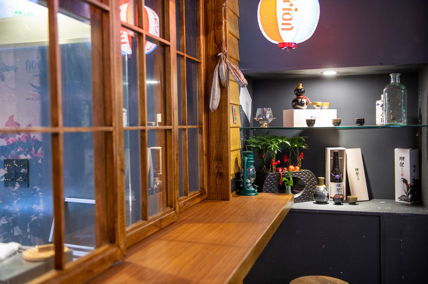 一推開大門,右邊是日式居酒屋常見的長條形吧台設計,左邊則是輕工業風格水泥裸牆,黑色系的天花板保有工業風格的鐵件裸露,在以黑色烤漆網格鐵件披掛著布條,演繹輕工業運動風格,透過溫潤的木紋桌椅與暖色系燈光,讓空間兼容溫和與個性的多元樣貌,看似日式居酒屋卻也有點運動吧的味道,相當有意思的裝潢設計。最裡面有個獨立的私密包廂,有電視有長桌,包廂的低消為一萬元,想要使用包廂請先預約,弄爹居酒屋可依預算客制化菜單。當晚包廂內已有客人,所以不便打擾拍攝。