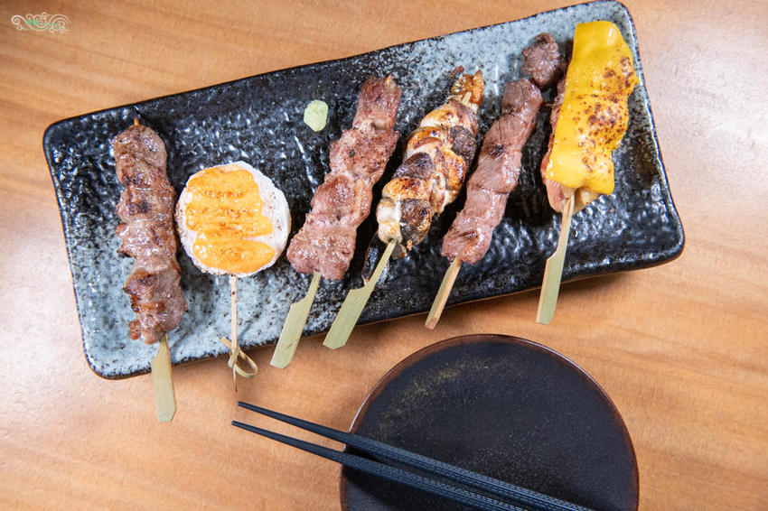 這也算是一種無菜單料理,內容物的組合就交給專業的弄爹廚師們來決定,今晚這一盤有豬肉、山藥、羊肉、秋刀魚、翼板牛與起司雞腿。腴滑嫩鮮的豬肉,口感相當立體。質地細且綿密的山藥,鋪著滿滿的明太子,在進行燒烤的動作,微焦的明太子帶來誘人的鹹香,讓溫潤的山藥更添風味。色澤焦黃油亮的羊肉串,細膩鮮香好滋味,撒點孜然粒再配上Orion啤酒真是人生一大享受。帶著豐厚油脂的秋刀魚串燒,完整保存秋刀魚原汁原味的緊緻鮮甜。嫩度適中的翼板牛,火侯熟度掌握的剛剛好,只用些胡椒鹽去提味,肉質鮮美豐腴,嚐起來韻味十足。濃郁牽絲的起士再撒點黑胡椒鹽,跟鮮嫩的雞腿肉一起入口,起士的味道緩緩化入口中,把雞腿肉的甜輕輕托起,黑胡椒鹽將整體滋味帶上另一個高峰。