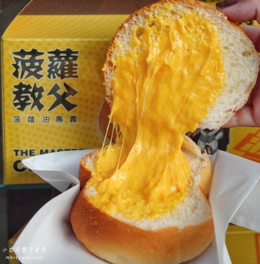 從台中開下來的「菠蘿教父新市店」為南部首家分店!高達15種口味有鹹有甜每種都感覺很厲害😍 小白特推「瀑布拉絲菠蘿包」熱熱拉起司畫面超牽絲好邪惡!菠蘿包外酥內軟香氣更是迷人,每日限量販售,提早預訂享九折優惠,滿10顆就能免費外送👌