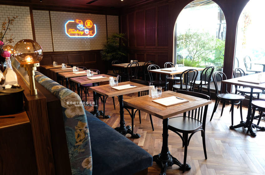 台中是永心鳳茶第五家分店,和勤美誠品書香人文作結合,多了車廂式卡座包廂半開放位置,用拱門、復古花布詮釋在地特色文化。