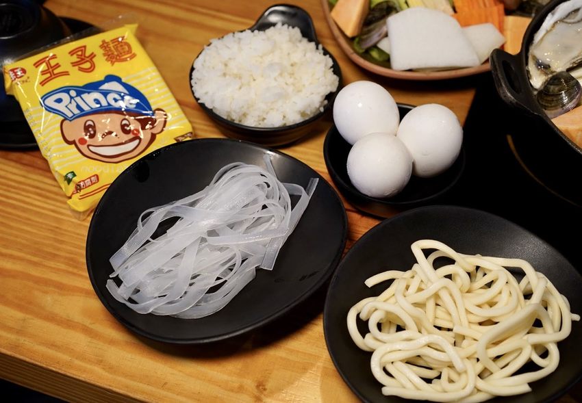 附餐有白飯、王子麵、烏龍麵、寬冬粉四種選擇,另外套餐還會附上新鮮雞蛋乙顆。