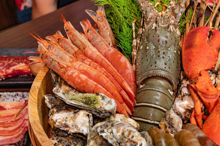 差別主要在於肉類的升級,像是安格斯牛、伊比利豬、以及生蠔、牛舌、草蝦吃到飽。