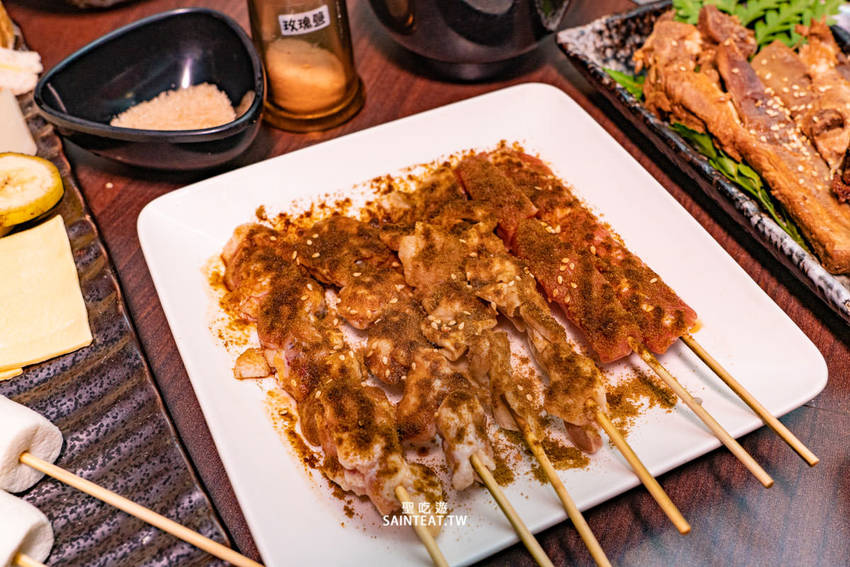 喜歡吃孜然的話,燒肉眾這裡有個孜然串燒的品項,分別有雞皮串燒、豬肉以及雞屁股。