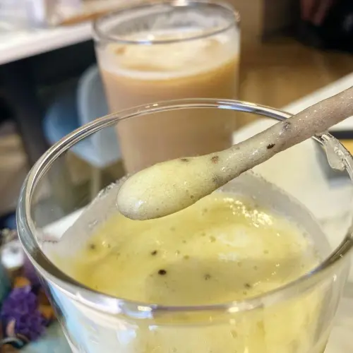 店裡的甜點皆由店長手工自製,奶酪採用法國藍絲可動物性鮮奶油,吃起來滑順不膩口,濃郁的香氣讓人回味再三。
