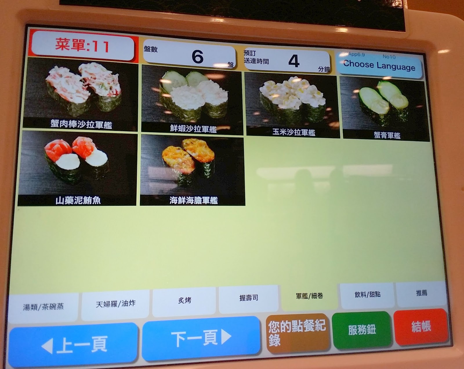 副食、手卷壽司、推荐壽司、飲料等,所有點餐紀錄都詳記在