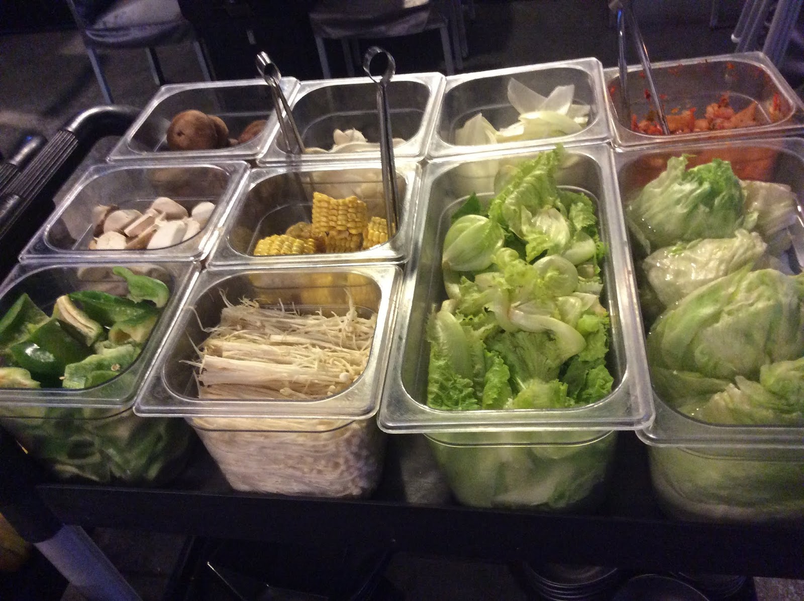 顧客自助區有生鮮食蔬-沙拉區和各式醬料區,