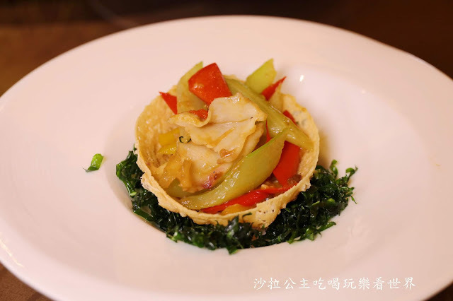 盛裝的容器到襯底的蔬菜都是可以吃的,金杯吃起來很香酥,整道吃起來味道很有層次