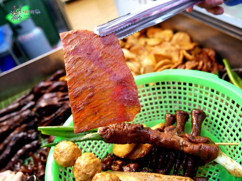 東山鴨頭攤和一般的炸烤、滷味攤放的東西大同小異,比較大的差別應該就在那大大支的鴨頭,還有大部分食材都是有先滷過入味的。