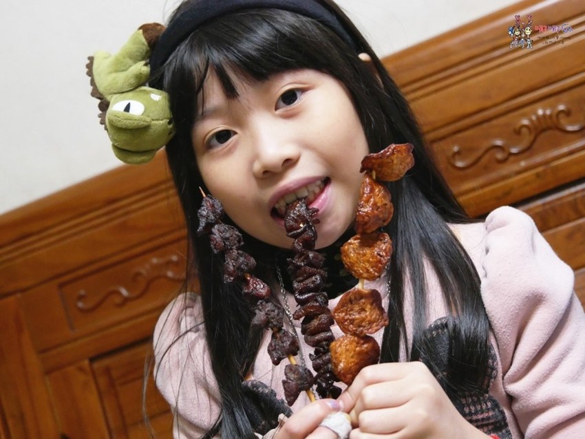 Yelena點了一串鳥蛋當場就吃起來,我覺得口感有點快要變成鐵蛋了,味道鹹鹹甜甜,吃起來軟Q,滿滿的蛋香,小孩吃到讚不絕口非常喜歡。