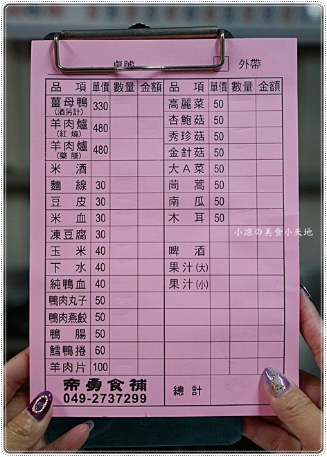 帝勇薑母鴨 菜單
