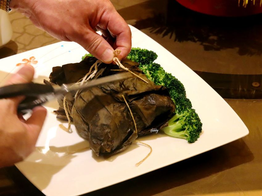 隨著荷葉的開展,空氣瀰漫著紹興酒香及荷葉淡雅的芳香。