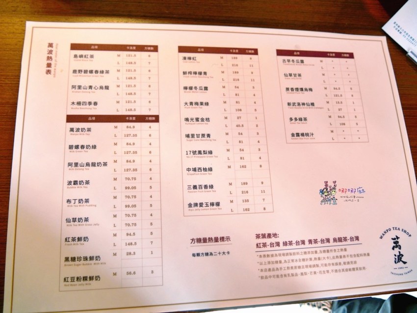 我覺得很厲害的是這個卡路里表,這是減肥的人很需要的指標,奶茶類果然很可怕啊!