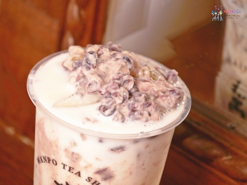 然後是我很喜歡的紅豆粉粿鮮奶,這只有做中杯,但每次喝都很喜歡,已經變成我喝萬波的必點款了。