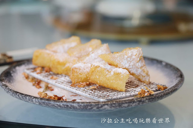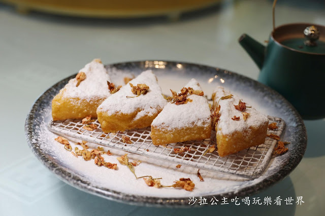脆脆的外皮與黏糯的內層,吃起來跟麻糬口感很像,中間包覆的茉莉花帶有甜甜的花香,沾點糖粉吃,風味更加提升