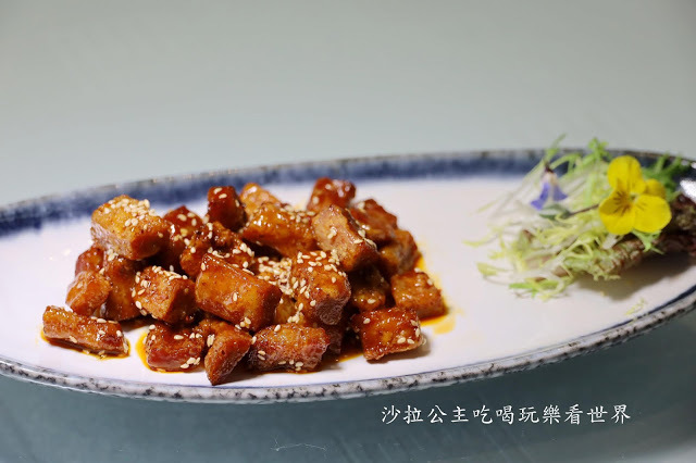 奇味松阪豬夾起來時會像拔絲地瓜那樣牽絲,主廚調出的"奇味"醬汁完全與豬肉結合,吃起來甜甜的帶點辣,口感脆彈,很喜歡主廚調出來的奇味醬汁