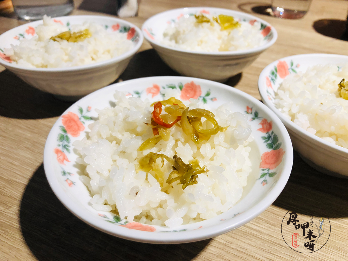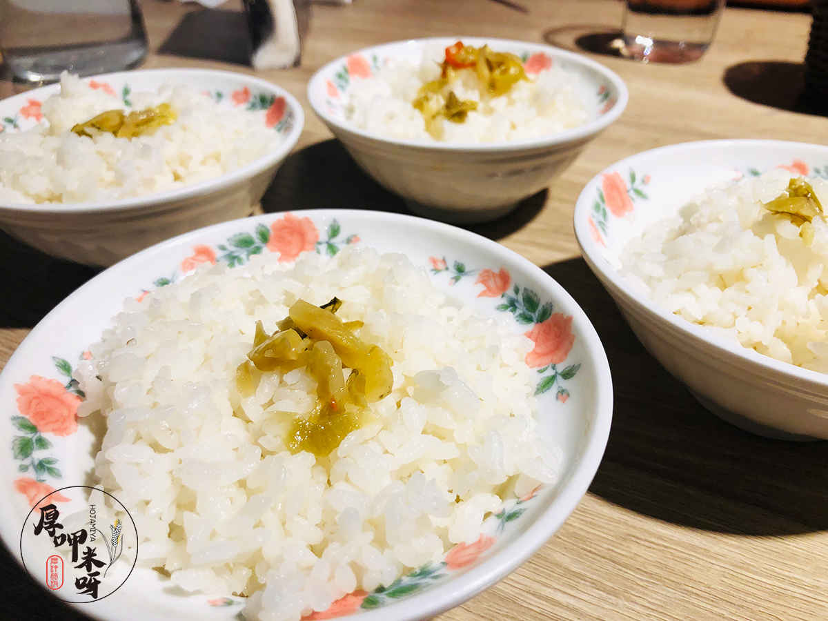 | 好吃的白米飯上點上些許酸菜,美味! |