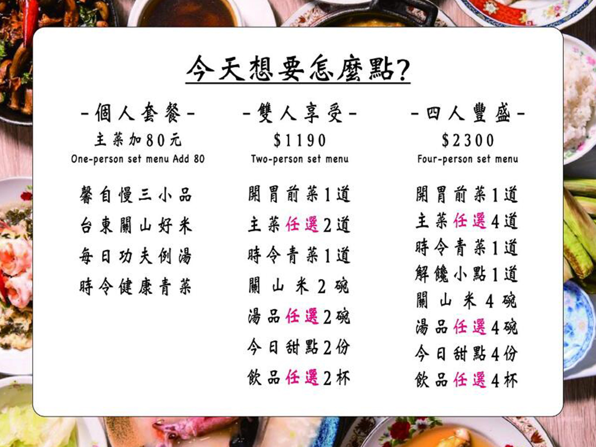 | 一個人也有套餐選擇,輕鬆吃台菜 |