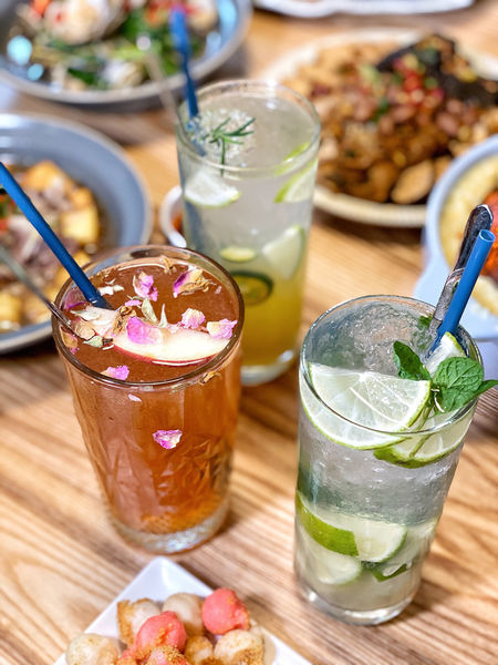 ▫️有玫瑰茶當然要選囉,這杯很有美研社風格,但多了青茶味,清爽中帶有優雅玫瑰香氣跟甜味,撒上玫瑰花瓣,少女感十足。調酒我選了我心愛的Mojito,基底蘭姆酒,加入薄荷跟檸檬,外面有時候會踩雷喝到不夠酸、太酸、甚至加入薄荷香精這種人神共憤的做法,做茶菜沒讓我失望,酸度跟酒味都是完美比例,薄荷香氣也很新鮮,讚!
