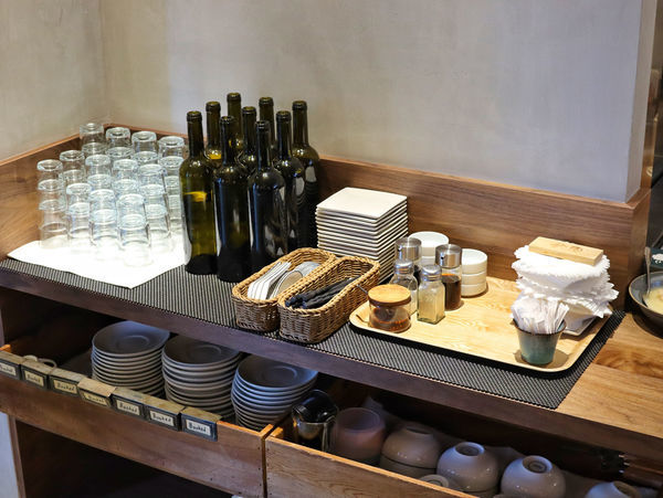 上樓前可以先在櫃台旁的玻璃展示櫃看看當日提供的小菜選項,有時還會有隱藏版的限量菜品哦。