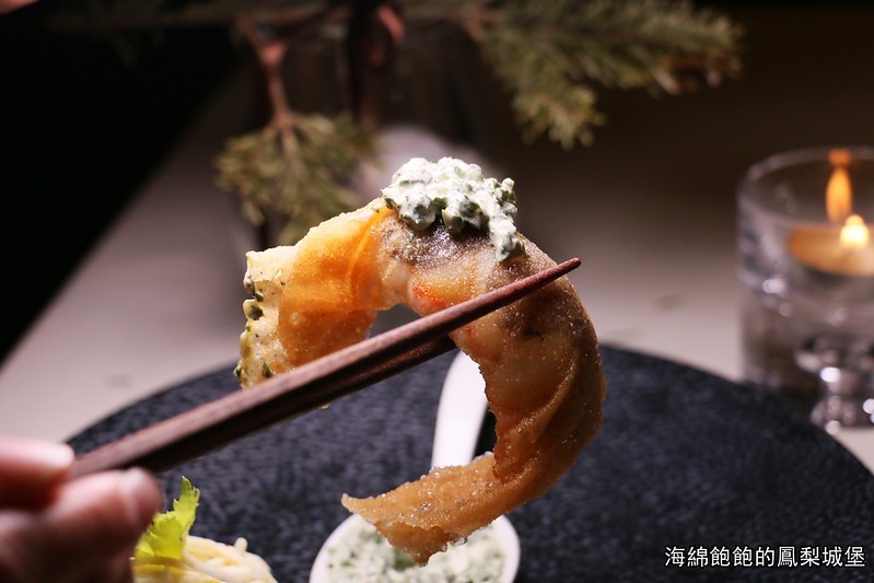 以法式酥皮將海鰲蝦包覆油炸,外皮意外的薄脆