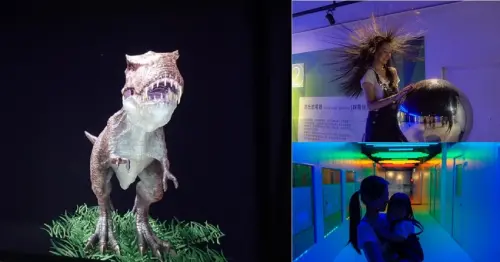 不僅有AR擴增實境來與恐龍互動、憑空操弄布袋戲偶來場精彩對戰,並透過VR虛擬實境來對抗猛獸,及DIY專屬VR眼鏡、還能把玩靜電球體驗怒髮衝冠的狀態,