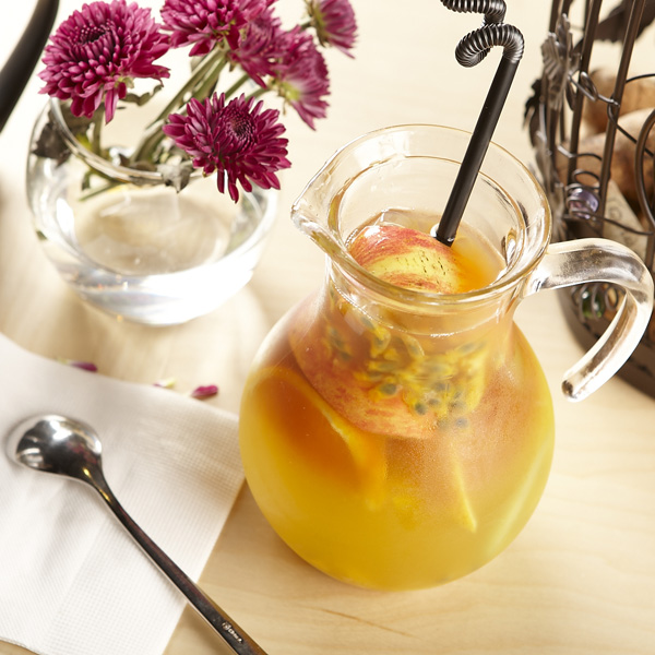 「新鮮水果茶」220元/以特選阿薩姆紅茶作為基底,嚴選當季盛產水果,新鮮的水果切片,蘋果、柳橙、奇異果、百香果、芭樂,綜合水果的巧妙滋味,搭配主廚自家熬煮的果醬,層次豐富、天然又健康。