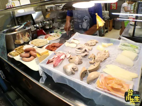 肉骨茶(每日限量):一樣屬於馬來西亞口味,湯頭是以中藥材、豬肉排骨、香料等食材小火燉煮數小時而成,喝起來香醇回甘,沒有過重的中藥味,排骨肉Q彈有嚼勁